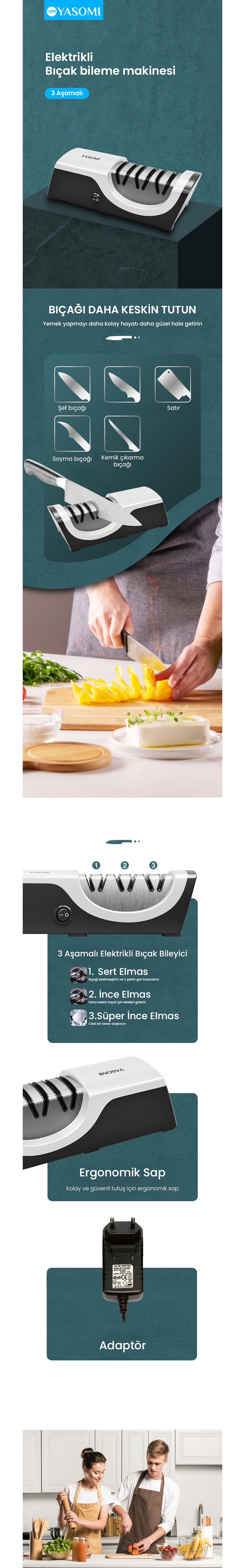Yasomi H1225 3 Aşamalı Profesyonel Elektrikli Bıçak Bileyici Mutfakta zamandan tasarruf edin, her zaman keskin bıçaklarla çalışmanın keyfini çıkarın!